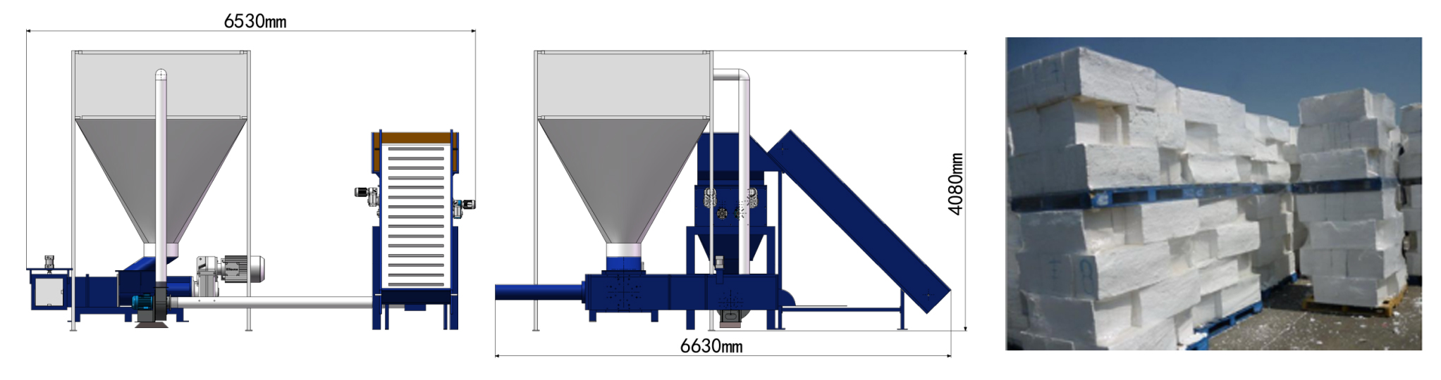 秦風機械正在制造泡沫塑料壓實機來解決這個問題,它可以減小 EPS 材料的尺寸。最終產品是 EPS 塊材,密度可達 400 千克/立方米。客戶可以輕松地將 EPS 材料運送到其他回收處理單元。