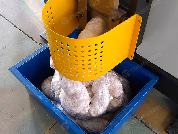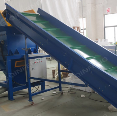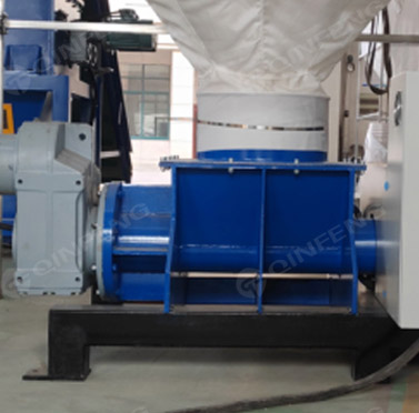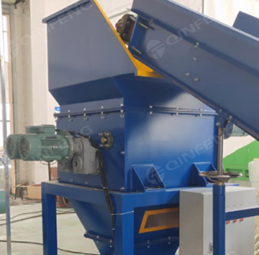 4軸破碎刀片工作時(shí),兩個(gè)不同旋轉(zhuǎn)方向的平行刀片軸開始旋轉(zhuǎn),形成波浪向下夾持,使物料不斷向下運(yùn)動(dòng),經(jīng)過切割刀片后,破碎成更小的塊狀物質(zhì) . 然后風(fēng)機(jī)輸送將物料吹入料倉,儲(chǔ)存一定量,然后物料在熱熔機(jī)中熔化。